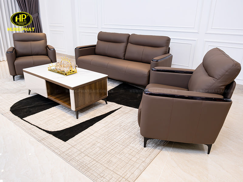 Ảnh thực tế sản phẩm sofa da bò KZ-117 được chụp tại nhà khách